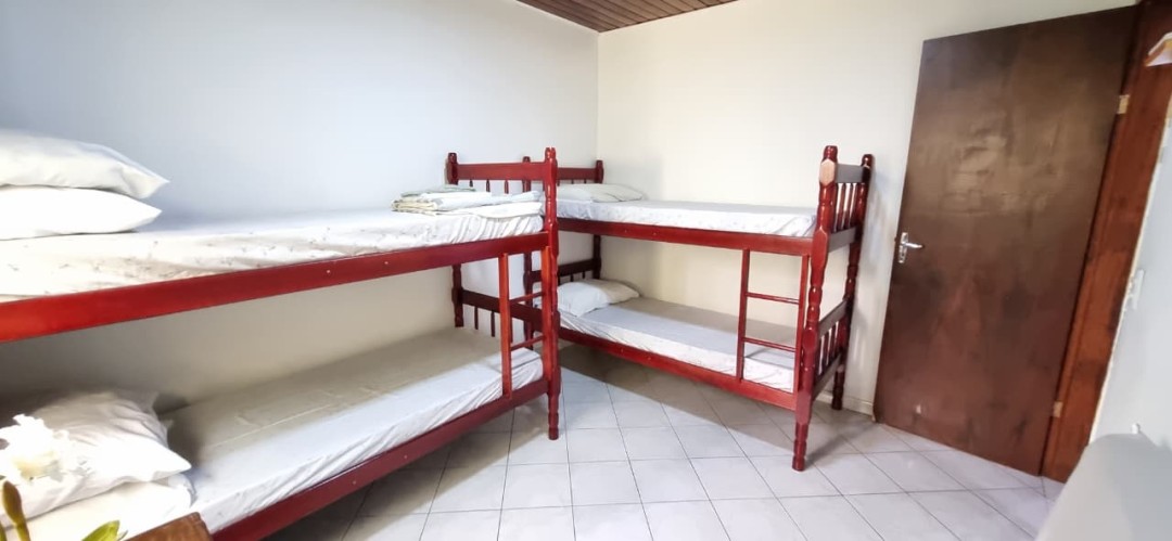 01 Dormitório com 01 cama de casal, 2 beliches solteiro e ar-condicionado;
